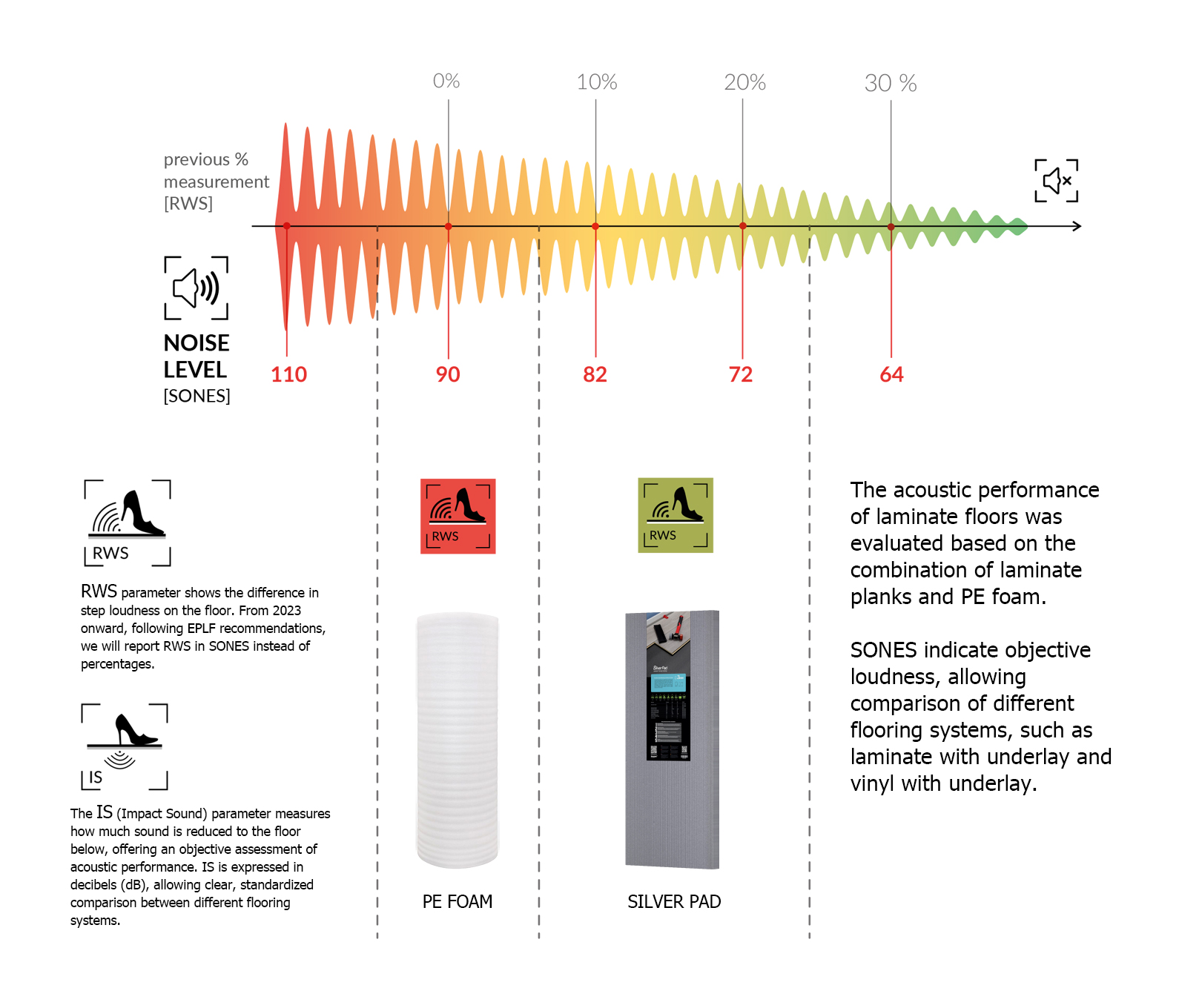 The lower the dB value, the stronger the performance – it means greater reduction of impact noise like footsteps or dropped objects. That’s why the IS parameter is essential in projects where sound insulation matters most, including multi-story homes, modern offices, and busy hotels.